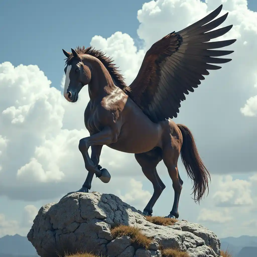 Un cavallo maestoso con la testa di aquila in cima a una roccia