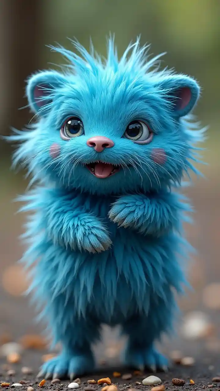 Creatura a palla blu e pelosa