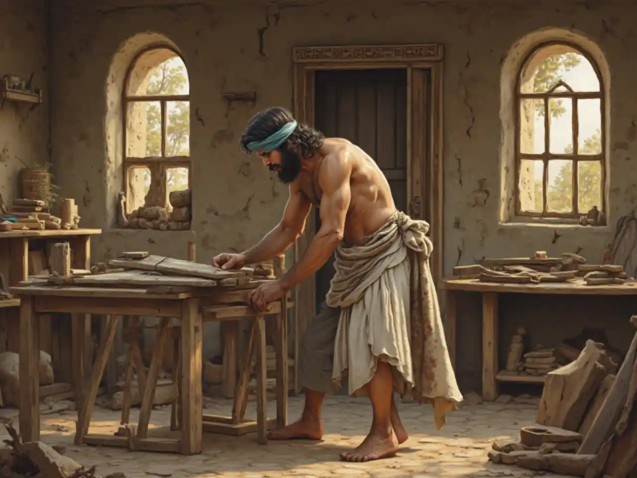 @JZbi05G3meO9754DvX7J sta segando legna nel suo negozio di falegnameria durante il periodo Achemenide