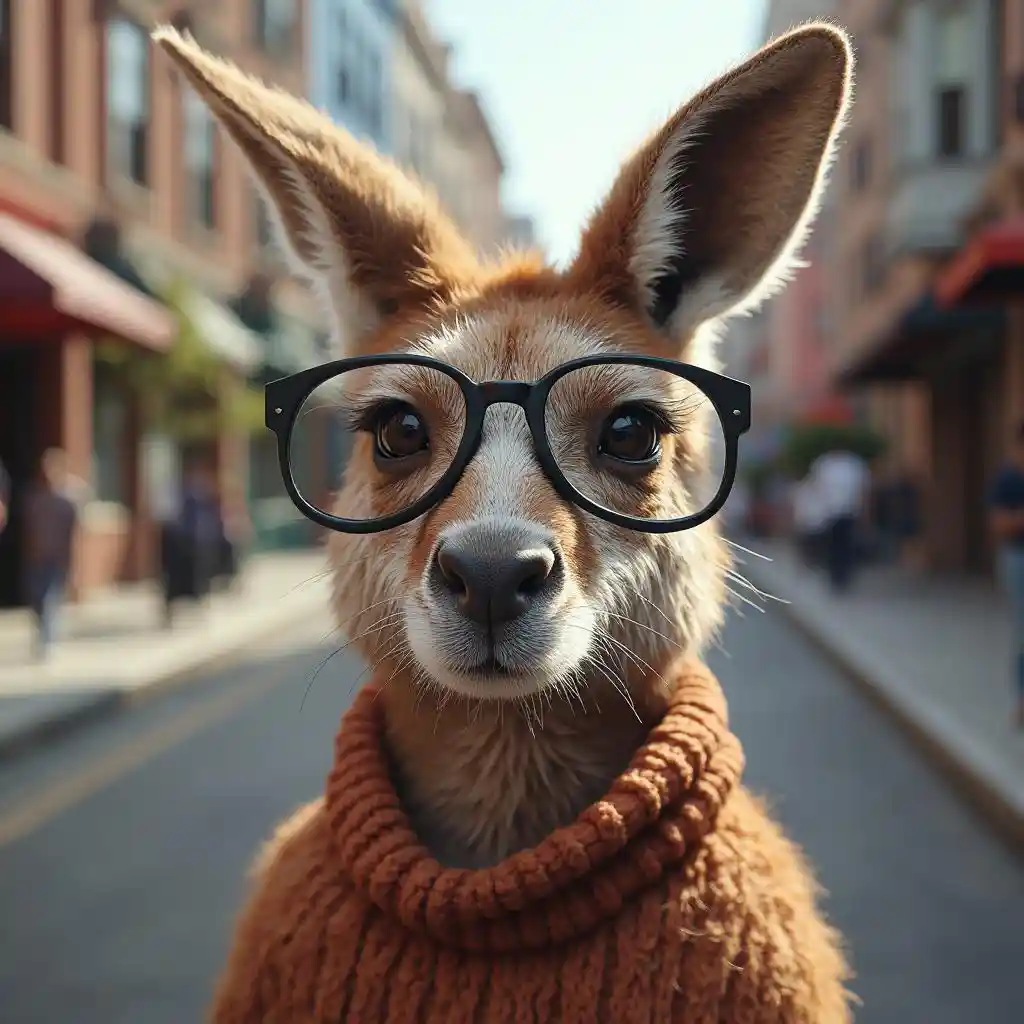 BellaUn canguro con gli occhiali a San Francisco, fotorealistico, colletto