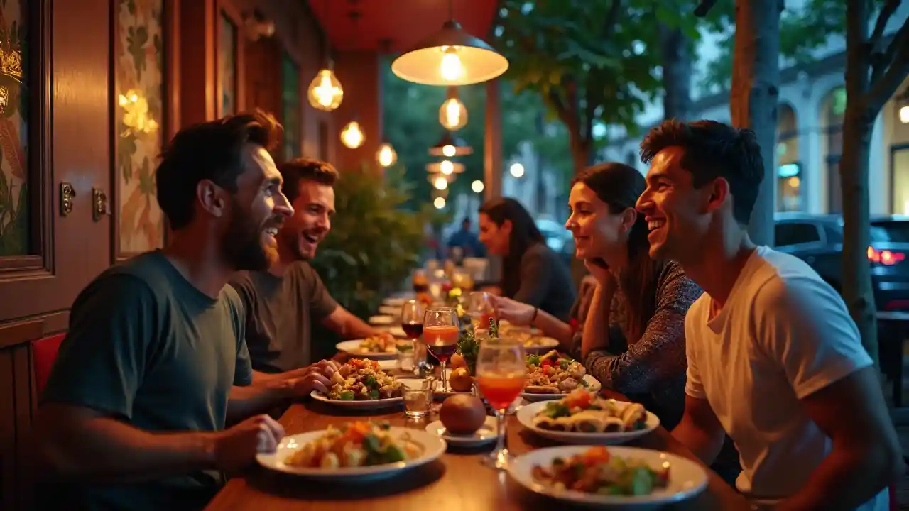 Messi e Cristiano Ronaldo godono di una serata a tema cool al ristorante Yaklo, viva atmosfera urbana, con decorazione elegante, e illuminazione moderna. La tavola era decorata con i loro piatti preferiti, e trasudava un senso di amicizia e gioia. Un assaggio della scena all'aperto mentre partono, illuminati dalle luci della città, catturando l'essenza dell'amicizia e della celebrazione, in 4K.