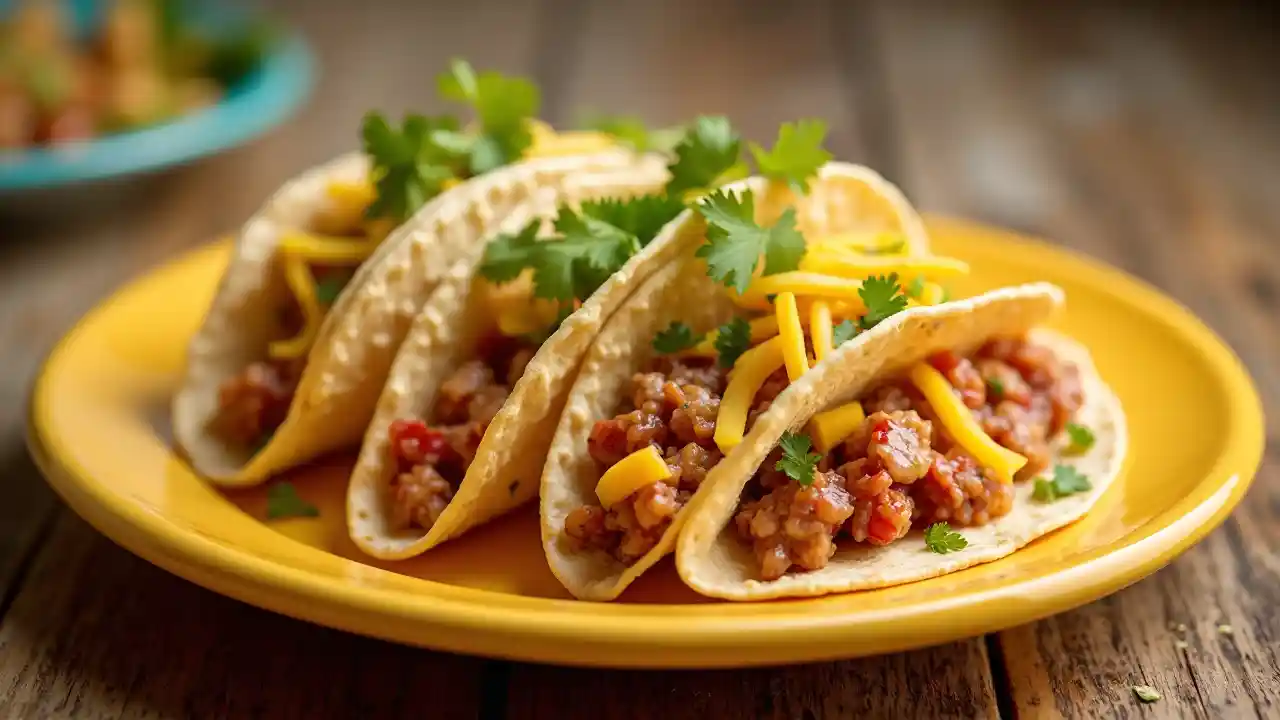 WilliamTortilla di farina a forma di taco messicano sul piatto giallo