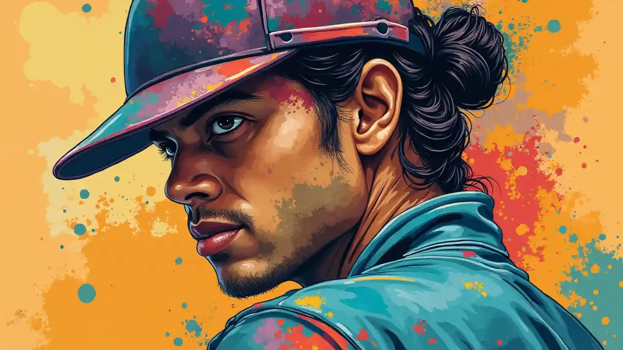 JackMitali Raj, giocatrice di cricket indiana - Forma astratta, colori splendidi, tecnica di patchwork, volto laterale, senza trucco, stile naturale