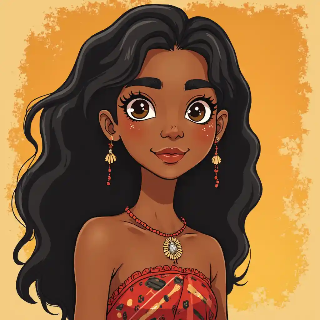 ElizabethMi faccia un'immagine di un avataro di una ragazza aborigena australiana usando lo stile di Moana come riferimenti