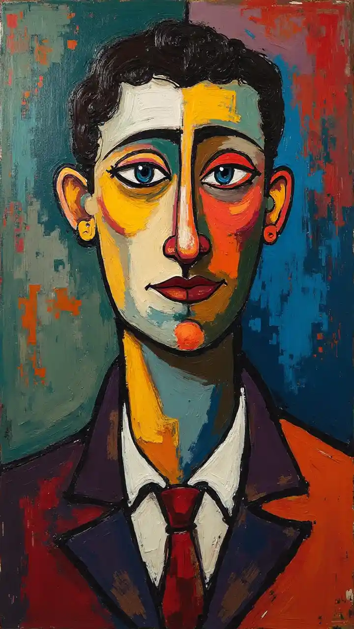 Autoritratto di Picasso in stile cubista ispirato a Kandinsky
