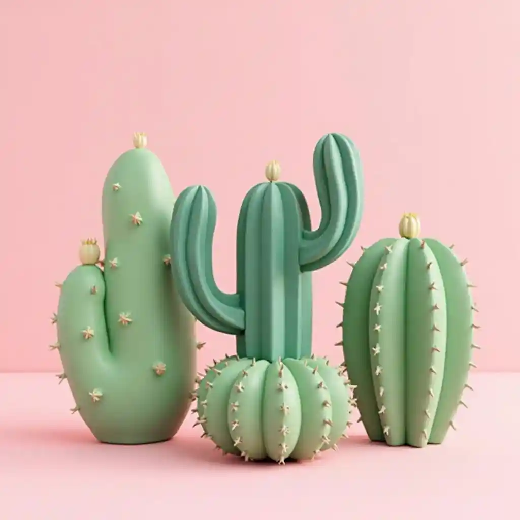 3d cacti on a pink background, realistic photo, detailed details, green cacti