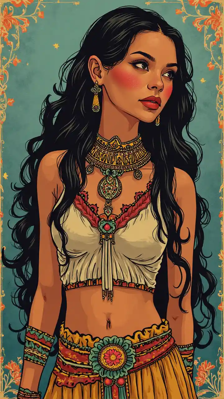 Pocahontas, illustrazione, stampa, ritratto, USA, stile di Chuck Sperry
