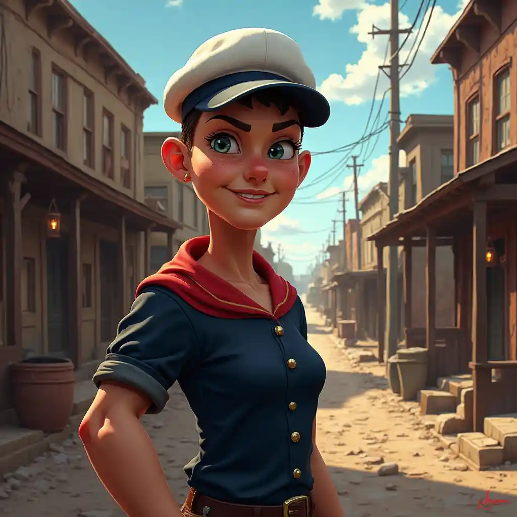 Uno splendido dipinto digitale di Popeye nel Vecchio Ovest