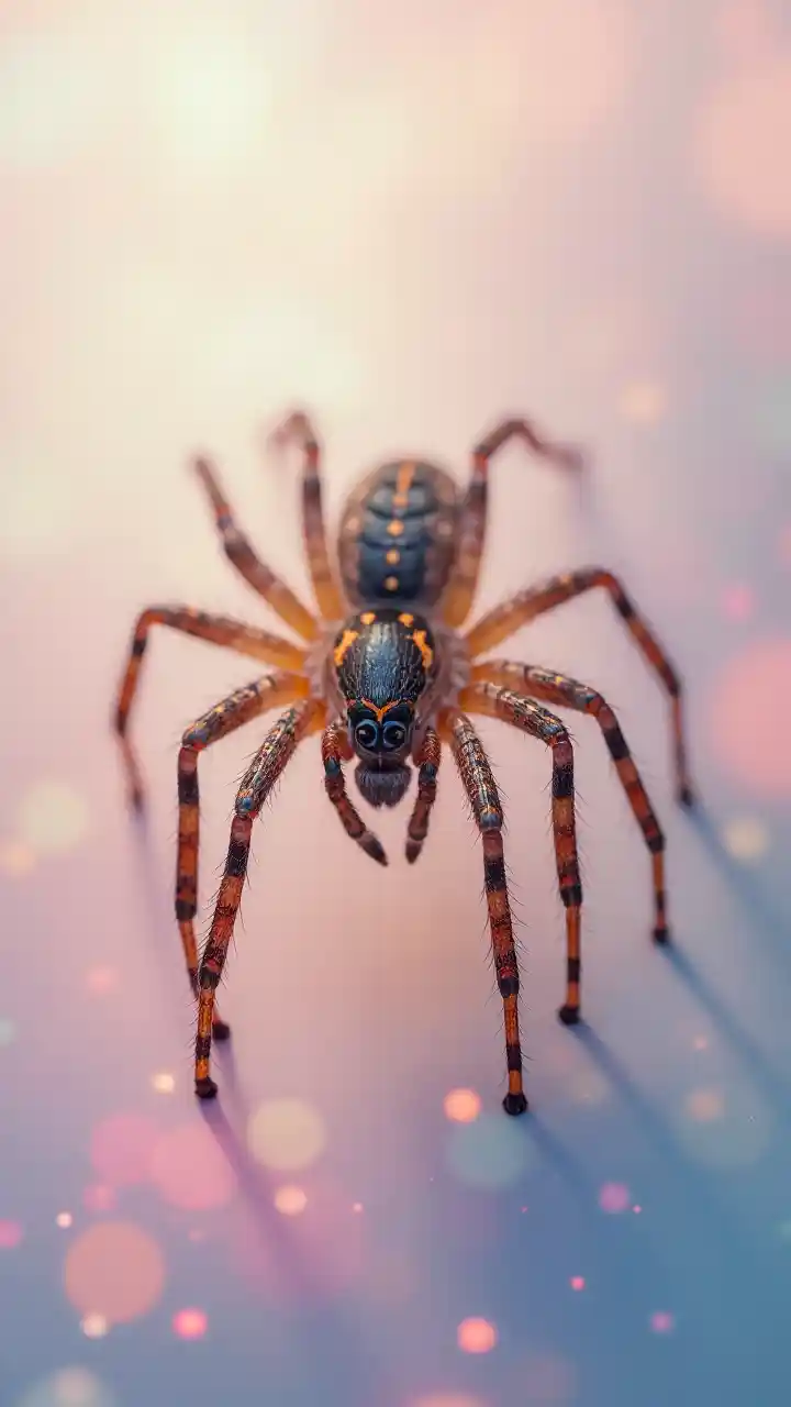 Un ragno che sbircia su uno sfondo luminoso pastello
