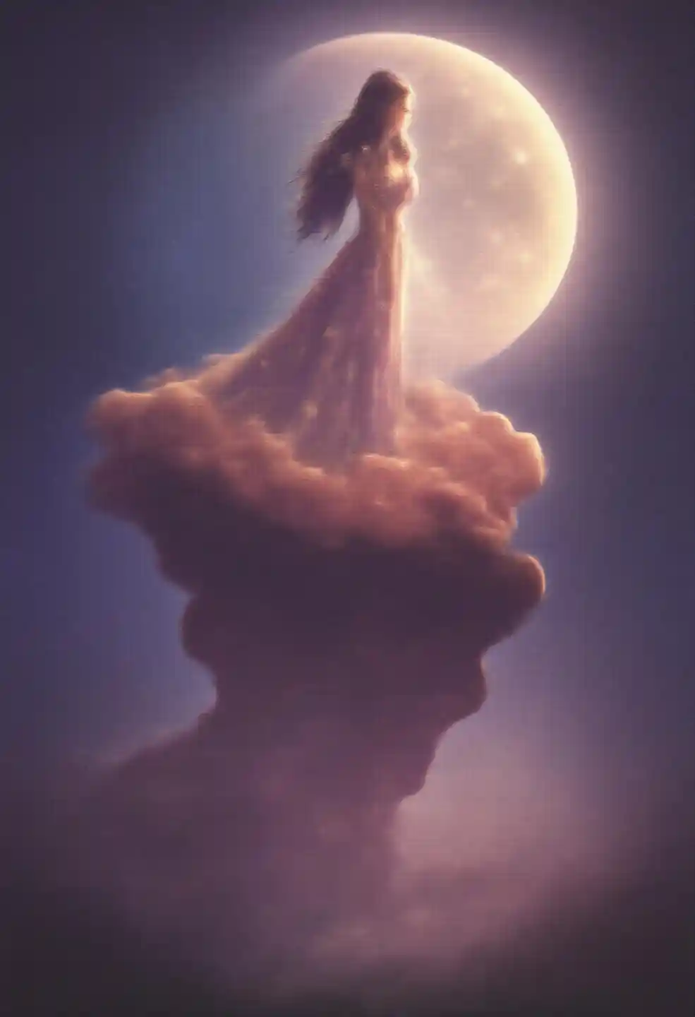 JaceC'è una donna che sta su un pianeta strano, sta guardando verso lo spazio, indossa un abito da viaggio, un abito con motivi di stelle brillanti, ultra femminile, dinamica