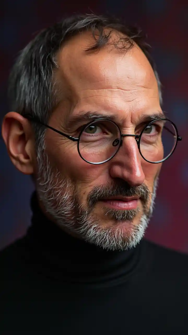 Ritratto di Steve Jobs, colori vivaci e saturi, elegante, molto dettagliato, moda, rivista di moda, messa a fuoco, trucco espressivo, illuminazione drammatica, profondità di campo, incredibilmente dettagliato, sfondo sfocato