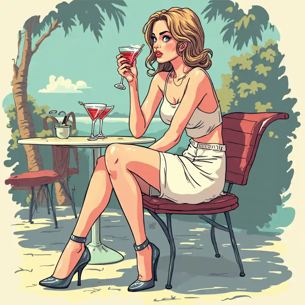 rubylyndonna seduta in un bicchiere di cocktail gambe fuori disegno vettoriale