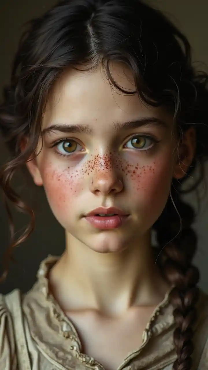 Inizio del XIX secolo Ragazza di diciannove anni, occhi marroni scuri, piccolo volto a forma di cuore con gli occhi e pelle chiara con lenti e naso