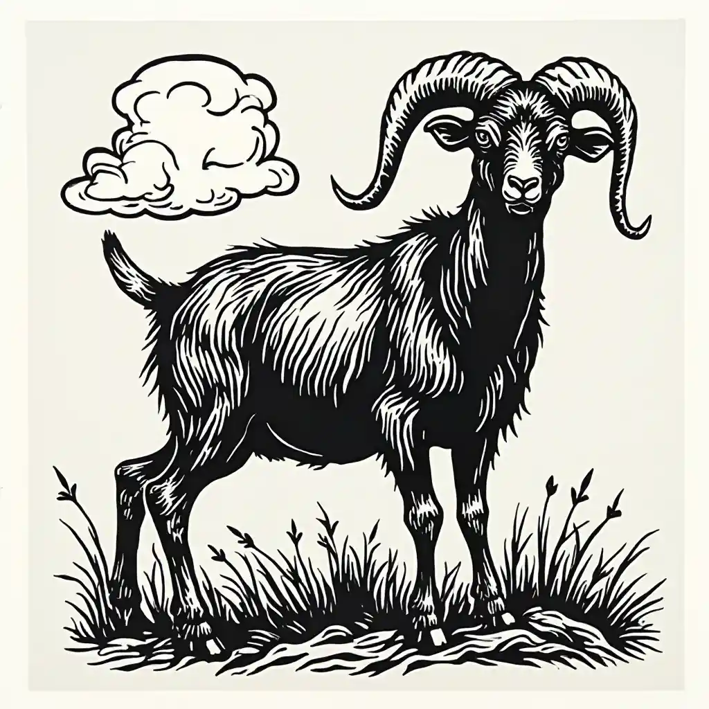 黒と白のlinocutヤギの太くて大胆なダークライン
