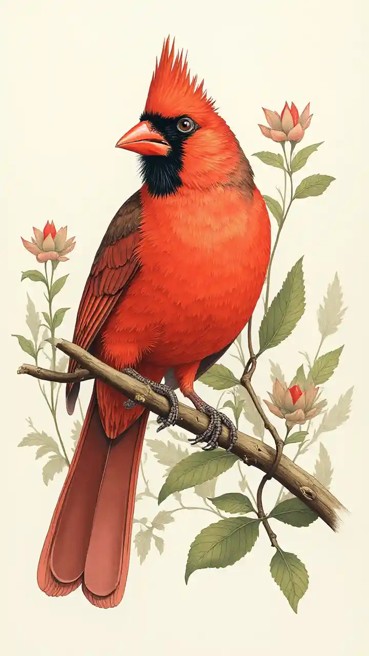 赤い北の枢機卿の鳥、マーク・ケッツビーのスタイルのイラスト
