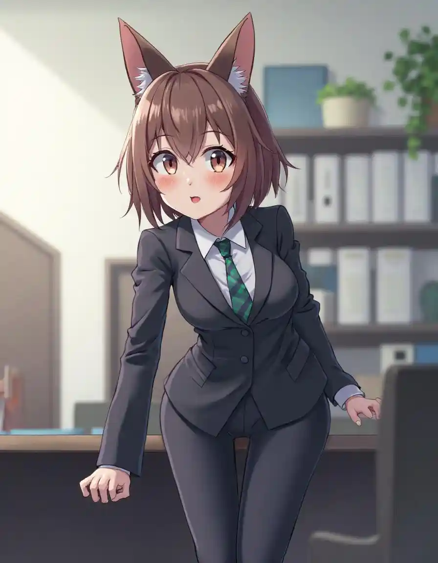 キャットイヤー,オフィス,スーツ,前かがみ,下から