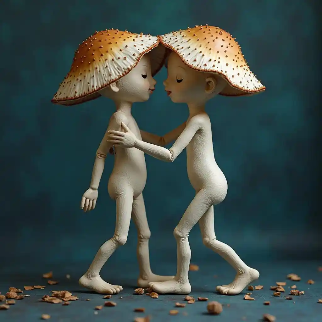人間のカップルのような2つのキノコ、手と足。. 右手は左肩を持ち、左手は抱き合っています。」腰踊りブルーは体に密着して腰をひねって4秒