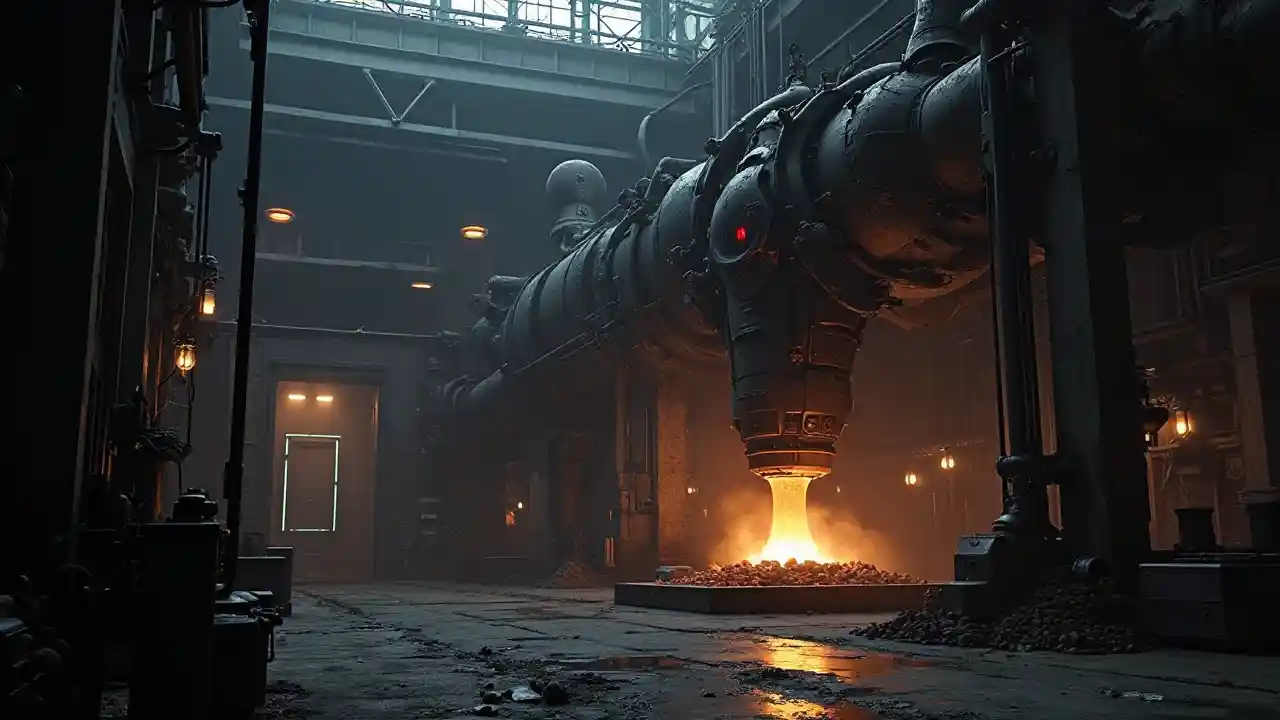 ダークグレーと黒,非常に暗い照明,バイオ機械工場,鋳造, H. R. Gigerに触発された溶融金属を発光,ダーク, SF