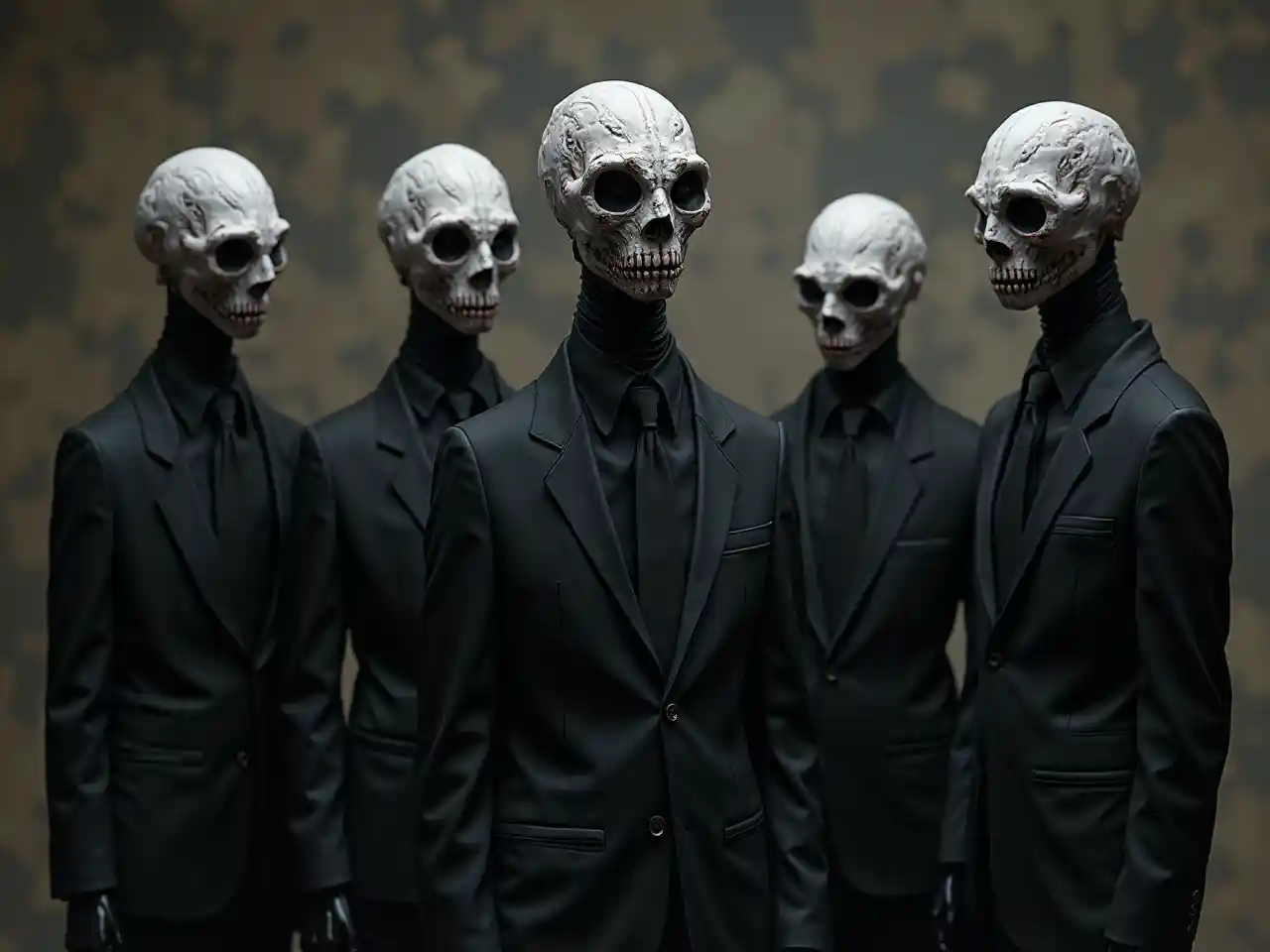 黒いスーツを着た不気味な邪悪な抽象的な非人間的な恐怖の生き物のグループ,コンセプトアート,サイバーパンクhq