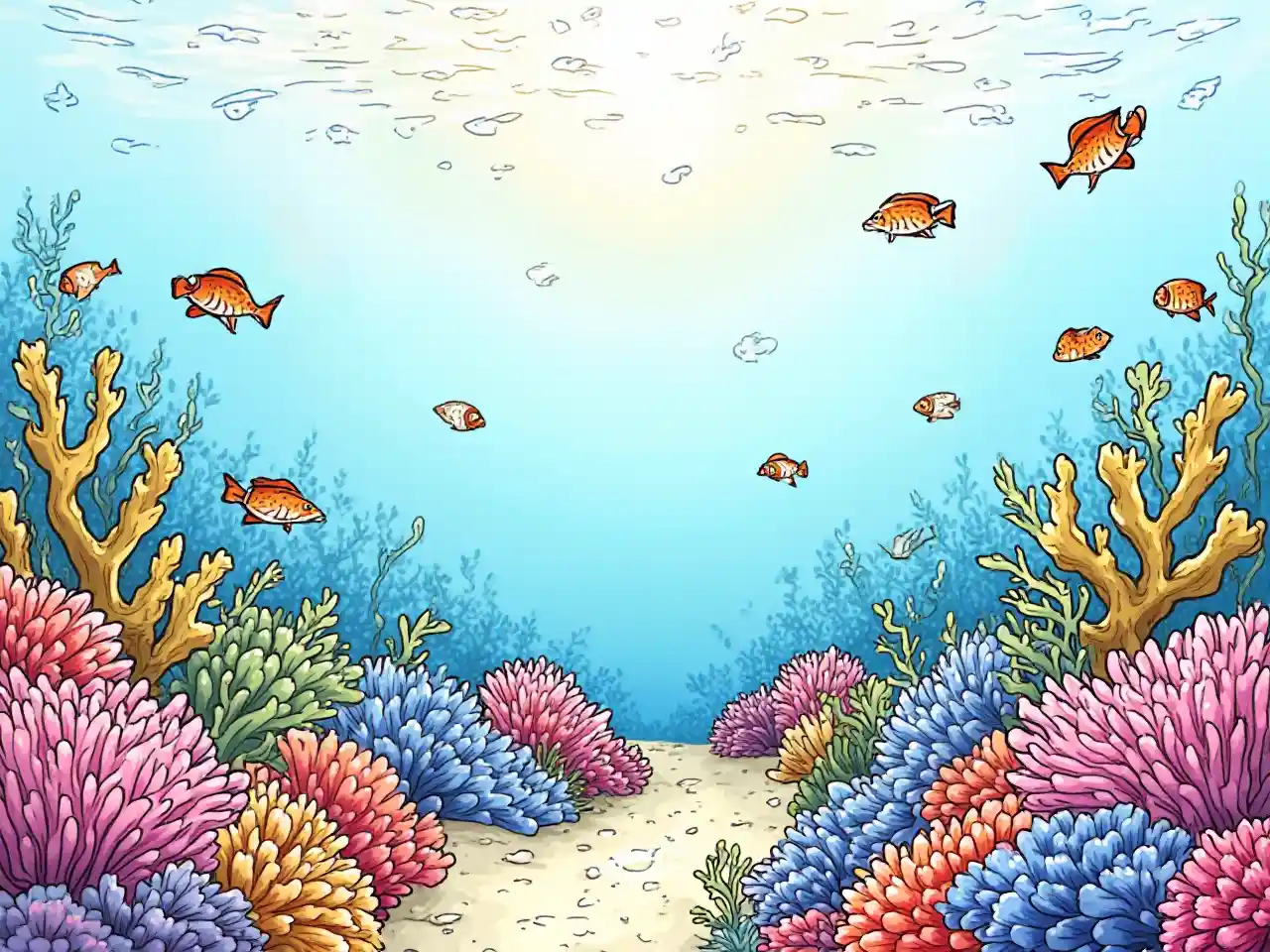 サンゴと魚でオーストラリアのグレートバリアリーフの大人と子供のための1つの絵を作成してください8. 5 x 8. 5インチのカラーリング準備ができています