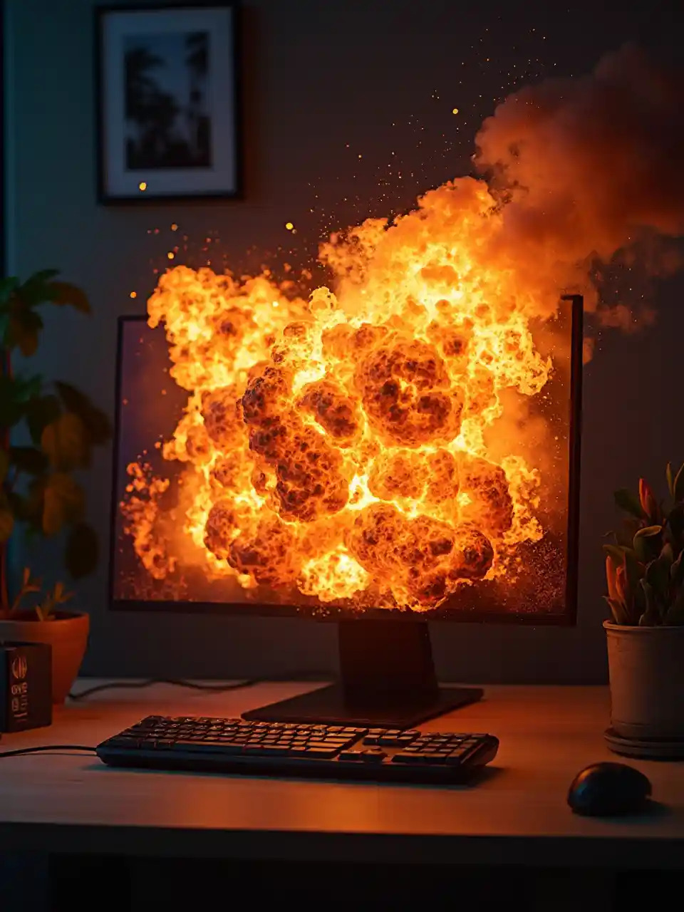 HPはProモニターに火をつけて爆発させた