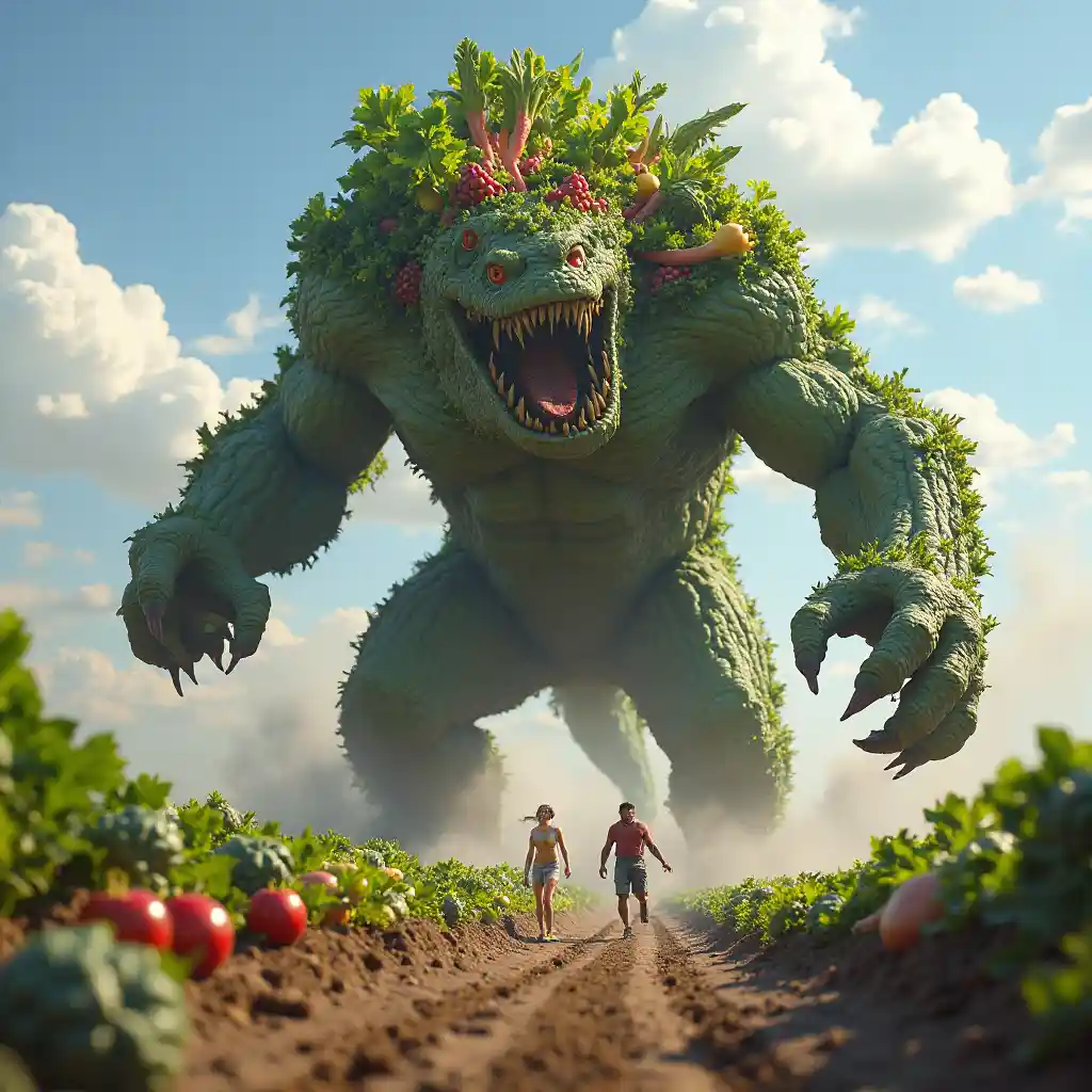 巨大なタイタモンスターベジタブルファームで人間を追いかけるカラフルな、究極のディテール