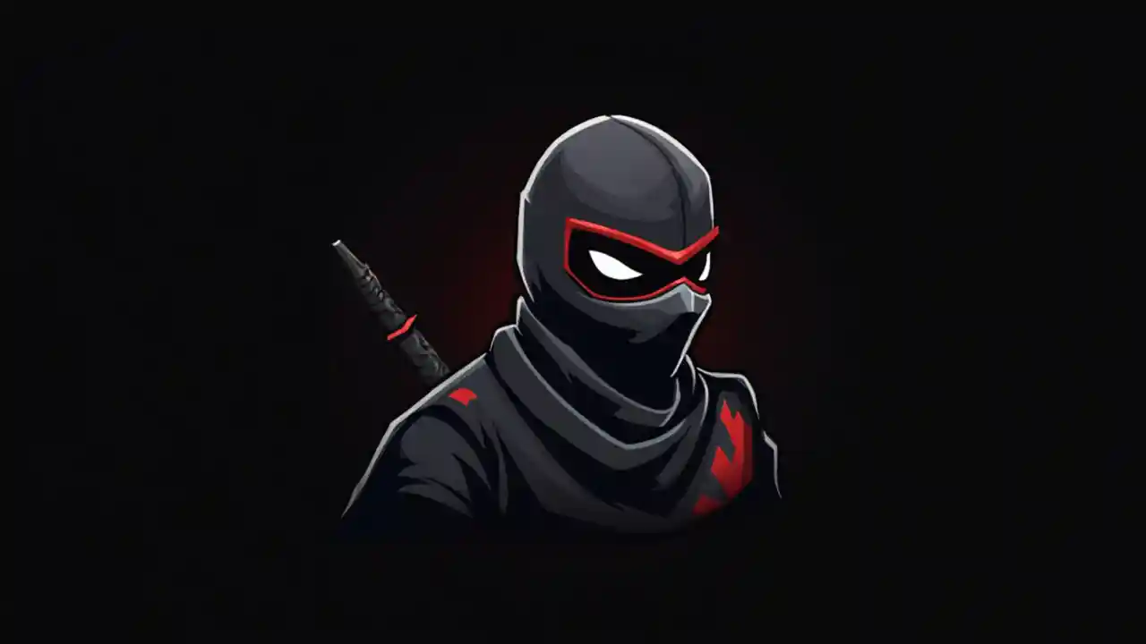 忍者マスコットのロゴ、黒の背景、ビデオゲーム、ゲームのロゴ、イラスト、ベクター画像