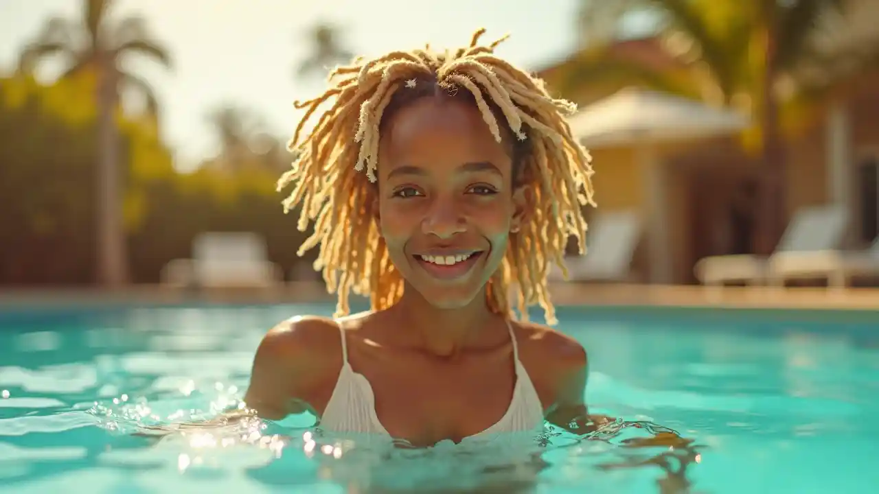 息をのむようなエネルギッシュな写真、23歳のハーフの金髪の長い三つ編み、白い服を着てプールで泳いでいます。. 背景にヤシの木があります。. この写真は、Canon EOS 5 D Mark IV一眼レフカメラとEF 50 mm f/1. 4 USMレンズを使用して作成されたもので、その卓越した明瞭さと自然な色再現で知られています。. カメラの設定は、絞りF 2. 8、ISO 200、シャッタースピード1/1000秒という、奥行きと明瞭さの完璧なバランスのために慎重に選択されています。. 被写界深度の浅さは、被写体を背景から切り離し、柔らかく溶け込ませ、被写体の屈託のない明るい表情を際立たせます。. 暖かい金色の太陽の光がシーン全体を包み込み、人間の肌の色を際立たせ、全体の雰囲気に魔法のタッチを追加します。. この忘れられない感動的な写真は、若さと自由の精神を伝えます。. -