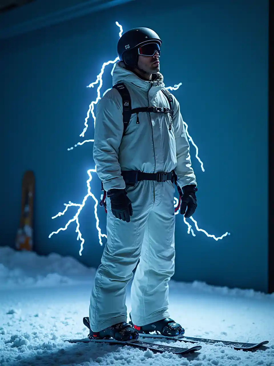 スキーウェア、コマーシャル撮影、スタジオ稲妻、明るい稲妻、無人、ボディレス