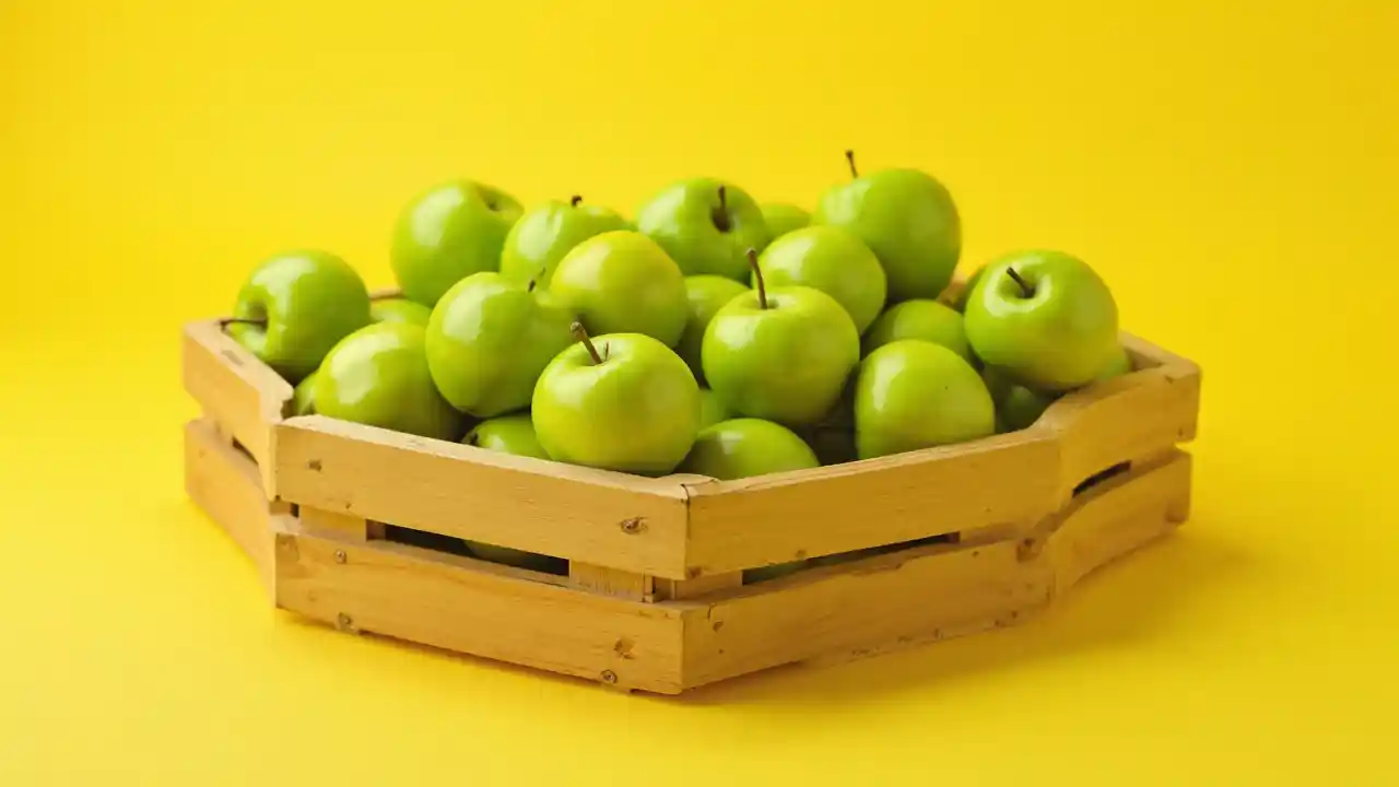 緑のリンゴの木箱,アイソレーション,黄色の背景,モデル,モデル