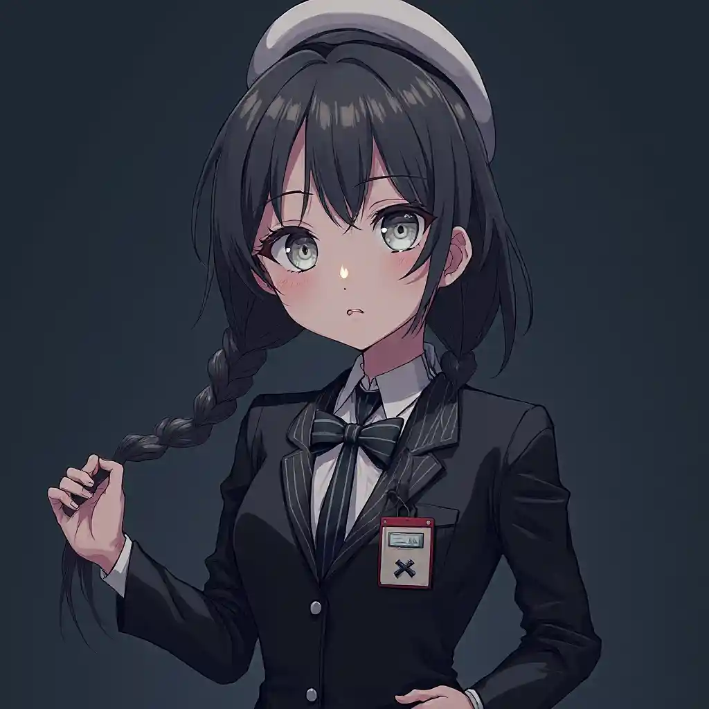 source _ anime,illustration,delicated features,simple background,illustration,high definition,masterpiece,dark _ theme,black _ theme,grey _ theme,[ 1girl,solo,long hair,looking at viewer,bangs,1girl,solo,petite,looking at viewer,source _ anime,illustration,delicated features,illustration,하이 디피니션, 마스터피스, [다크 그레이 테마 ( 1.2 ) ], 화려한, 섬세한 눈, 심플한 배경, 섬세한 얼굴, 섬세한 눈, 화려한, 걸작, [by x스트라이프 수트 넥타이 핀 몸집이 작고 섬세하다 fczj xxx667_illu 발광 멀티 리본 색상 심플 블랙_스몰_스네이크 화이트_실루엣은 플랫_플랫_롱_수트 명작 최고의 퀄리티 Uncredible from the pov is long_small_braid volume) hand_on_hip from _above_behind 1arm_up dark_blue _ background