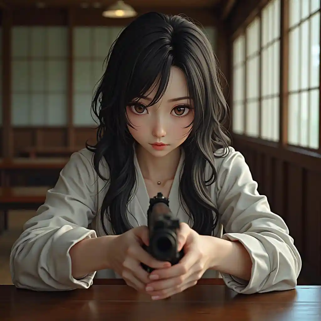 일본 미녀, 정면 보기: 1.331, 저격수, 권총 착용, 해부학적으로 올바른 5손가락, 팔꿈치 서빙, ( 8k, 최고 품질, 걸작 ) , ( rea