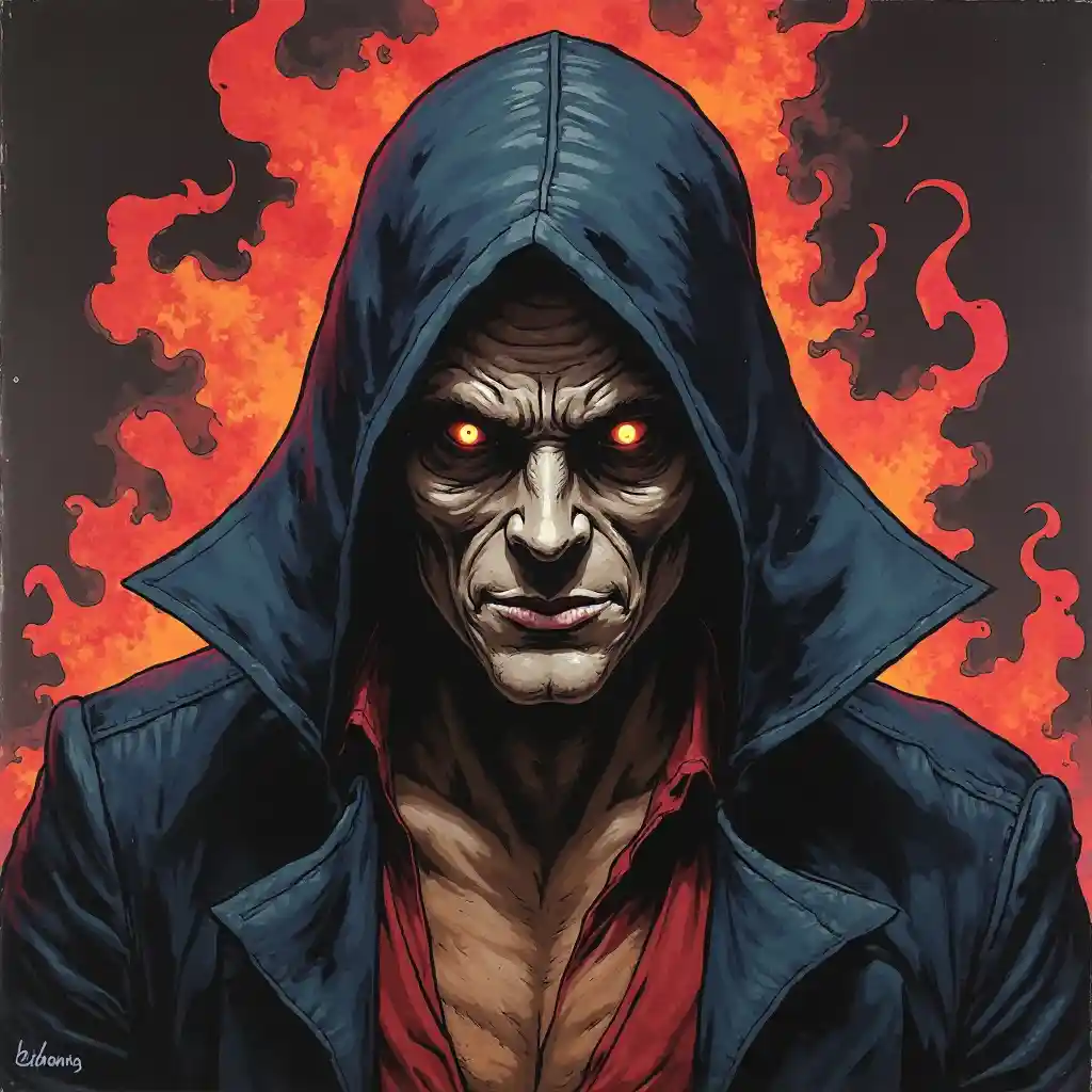 가면의 사악한 후광을 가진 70년대 만화 악당