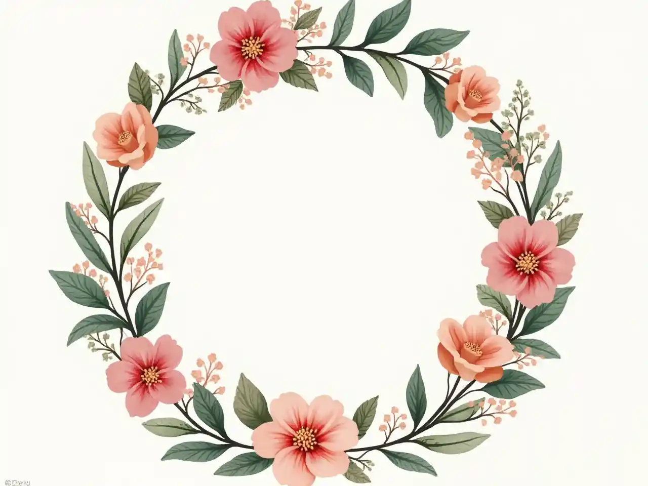 식물의 둥근 프레임 화환 일러스트, 밝은 색상, 벡터 이미지, 화환 프레임, 결혼식 날