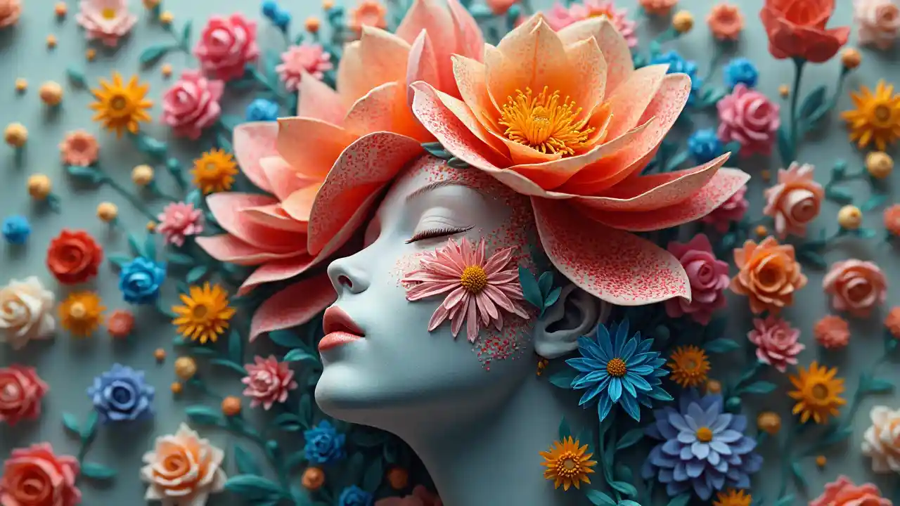 플라워 얼굴, 현실적인, 웅장한, 생생한, 3D,