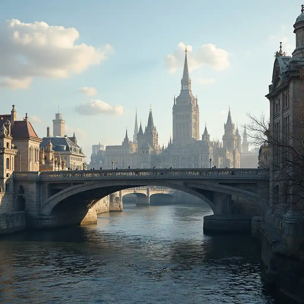 웅장한 신 고딕 양식의 도시 다리 이미지