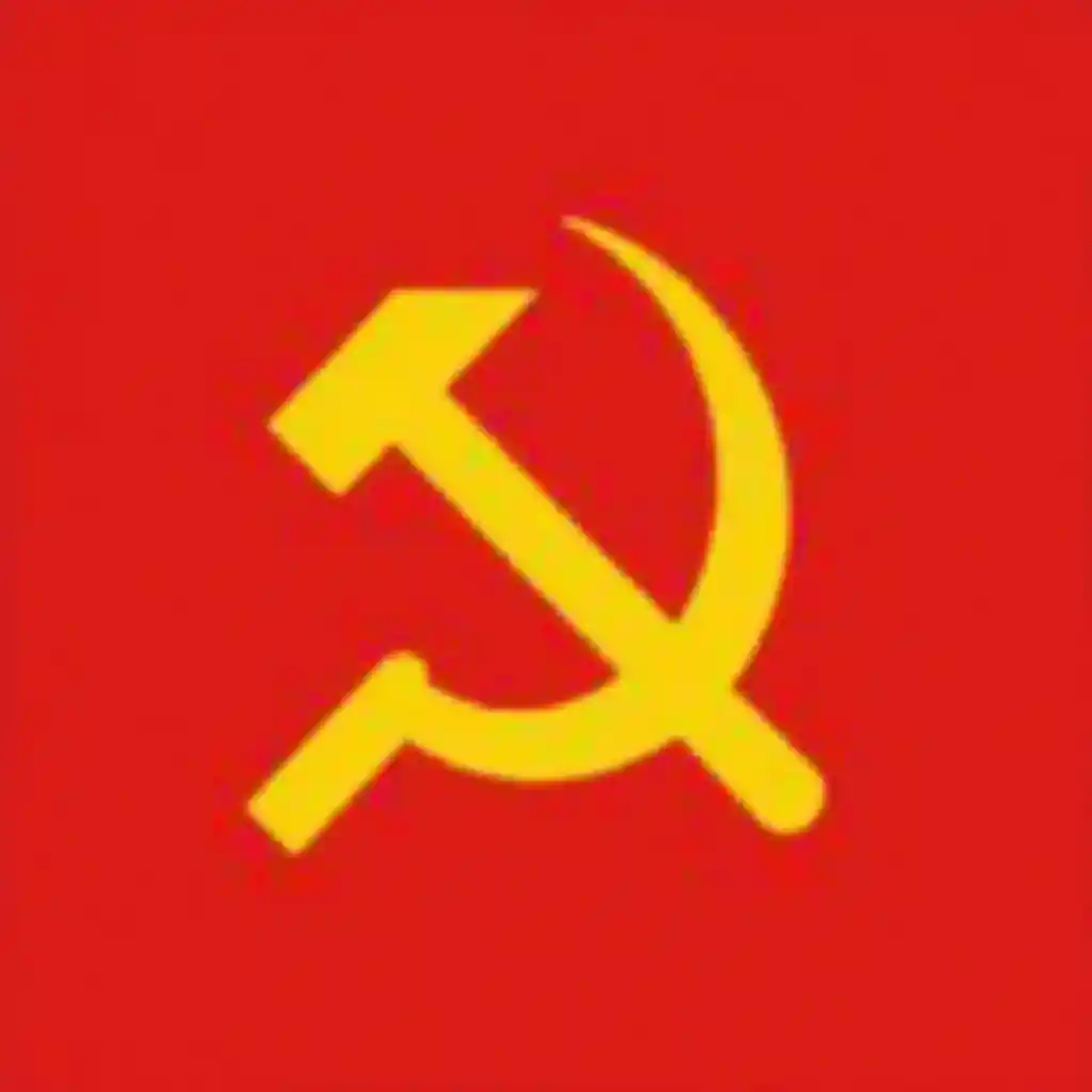 빨간색 바탕에 노란색의 상징적인 망치와 낫 심볼