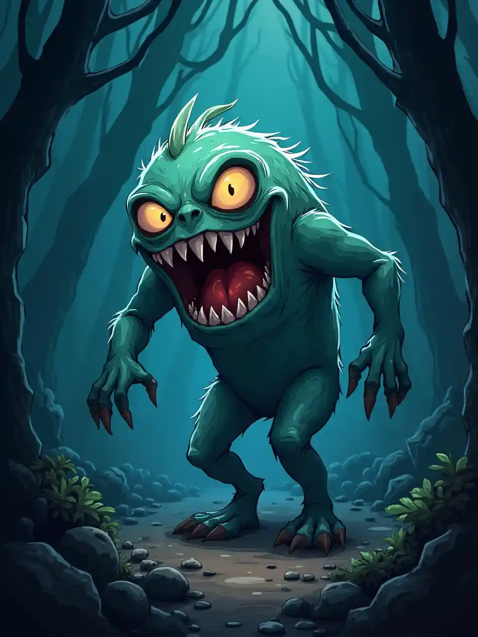 무서운 괴물, 어두운 숲에서, 만화, Cel-shaded, 공포