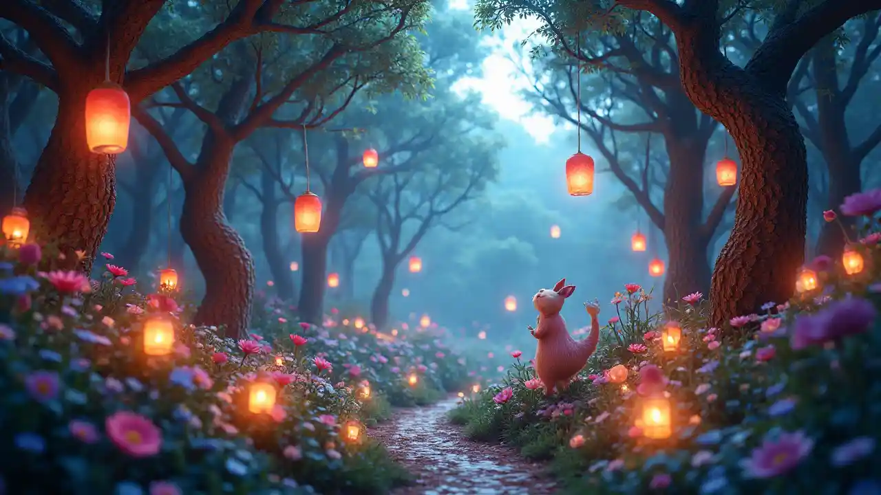 이상한 나라의 앨리스에서 영감을 받은 매혹적이고 신비로운 숲을 가로지르는 기발한 여행으로, 그곳에서 마법과 동화가 살아납니다.밝은 색상, 섬세한 떠다니는 랜턴, 달빛이 반짝이는 하늘 아래에서 노는 초현실적인 생물들이 특징인 장면.언리얼 엔진과 Octane 렌더링으로 제작된 3D 렌더링은 판타지 영역의 놀라운 아름다움을 포착합니다.향상된 Adobe Photoshop, 장면은 귀여움으로 가득 차 있으며 복잡한 세부 사항과 놀라운 풍경을 제공하여 비범하고 숨이 막힐 정도로 아름다운 느낌을 줍니다.