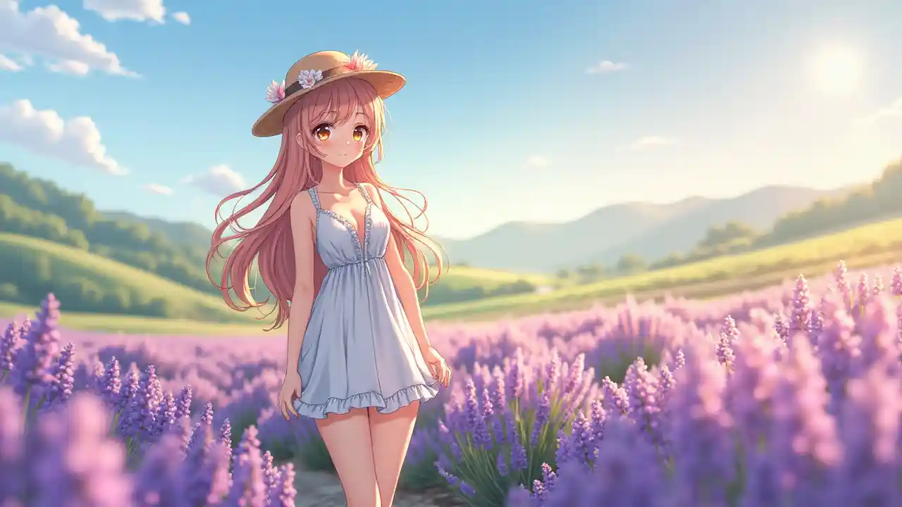 अल्ट्रा एचडी अॅनिम गर्ल इन लॅव्हेंडर फील्ड