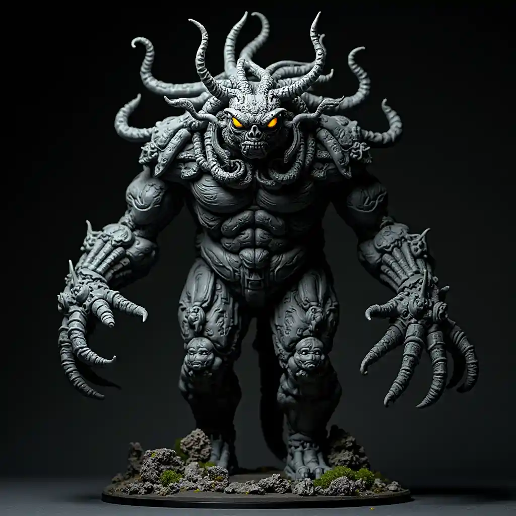 Michaelएक मोठी मूर्ती डेमन लव्हक्राफ्टियन Azathoth entièrement constitué de pièces de LEGO, fond noir, फोटो स्टुडिओ