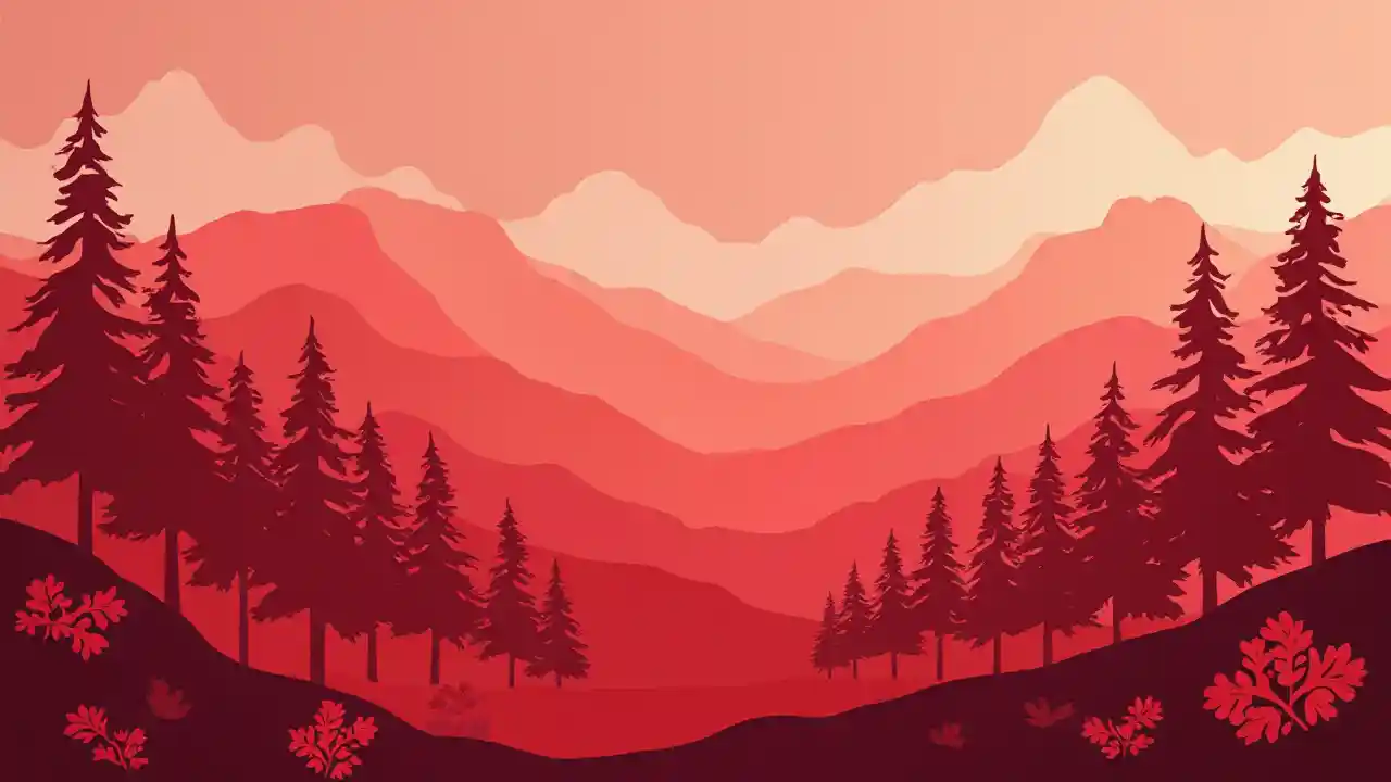 कागदाच्या शैलीत इडिलिक लाल निसर्ग देखावा