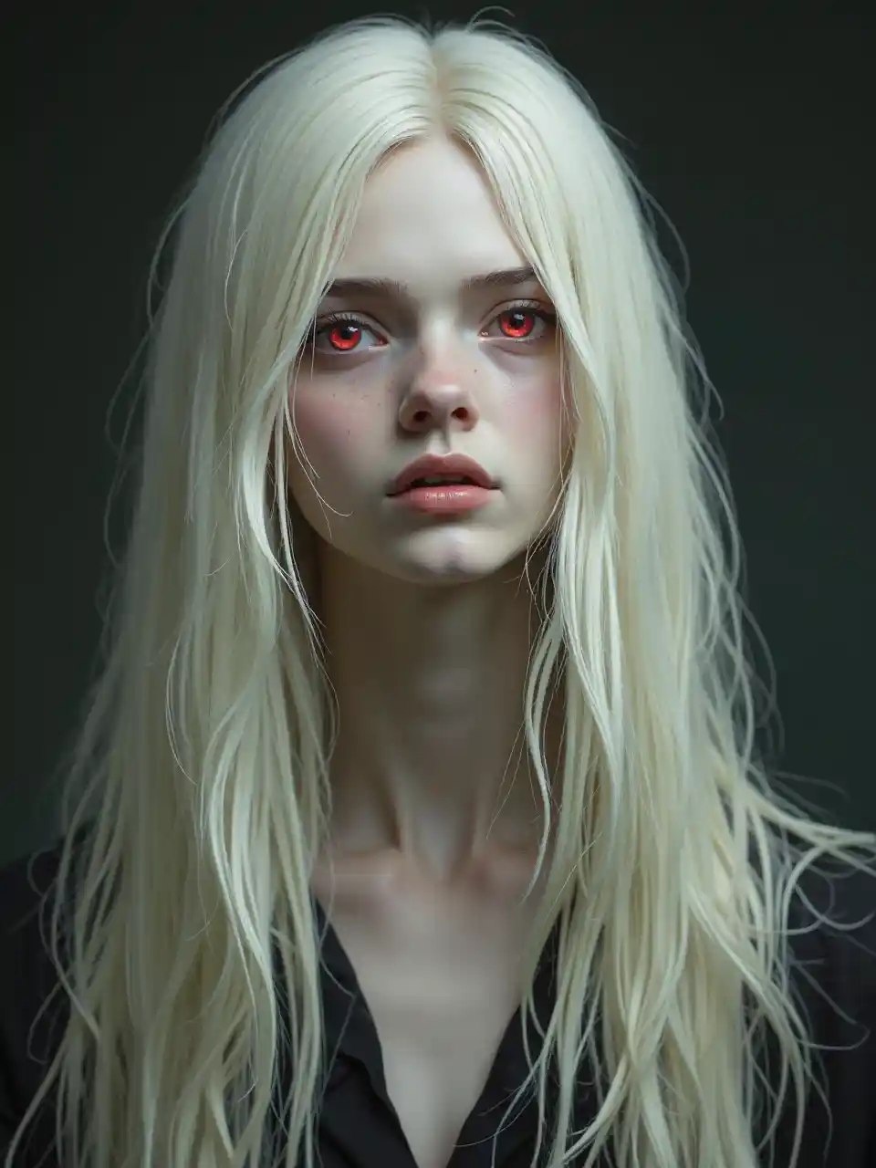 ScarlettJonge bleke man, albino, zeer lang blond recht haar, rode ogen