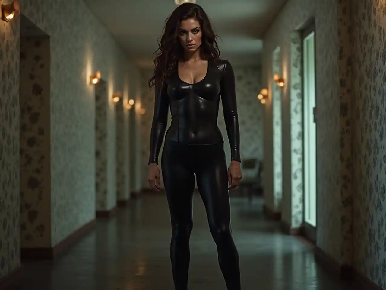 CooperEen lange, gespierde vrouw in een zwart latex pak staat boven je en kijkt heel boos naar je. Ze heeft grote kont en grote borsten.