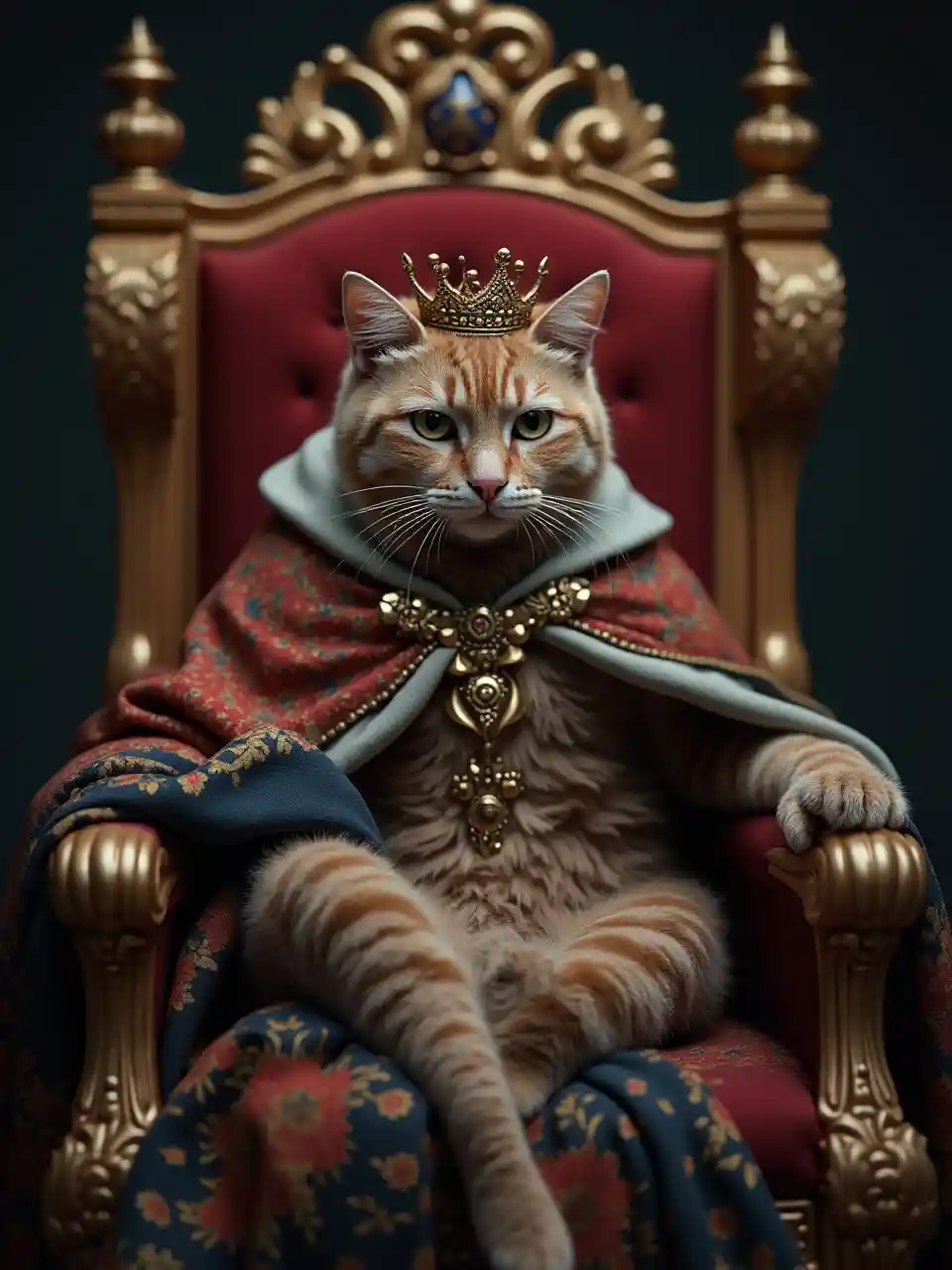 Fotorealistische kattenkoning op de troon