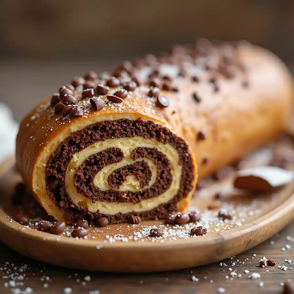 Zwitserse rol gevuld met chocolade, volledige afbeelding hd foto