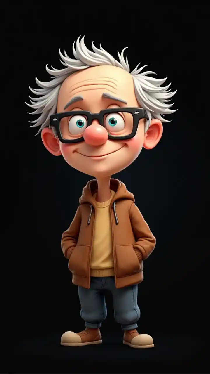 AidenEen oud tekenfiguren met zwarte bril, een afgelegen, zwarte achtergrond