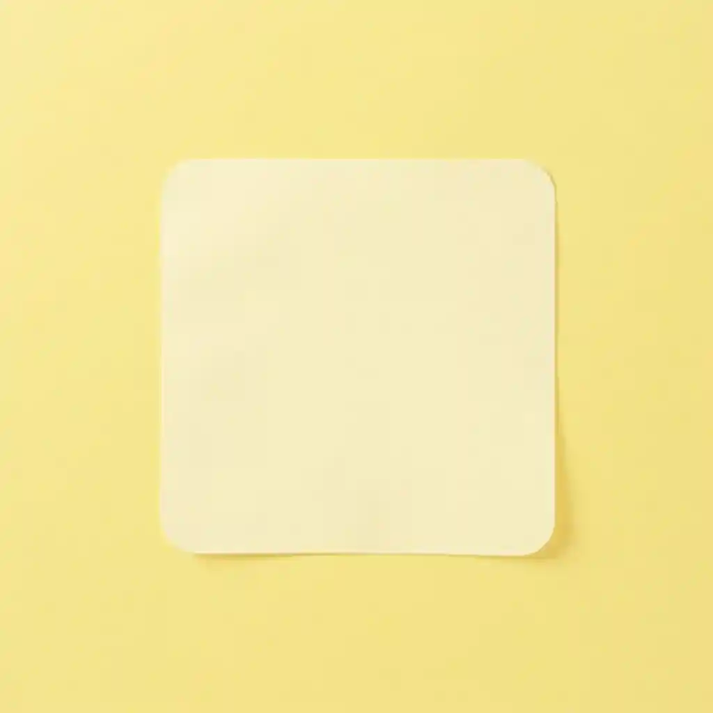 Duidelijke vierkante sticker met afgeronde randen op een pastell geel achtergrond