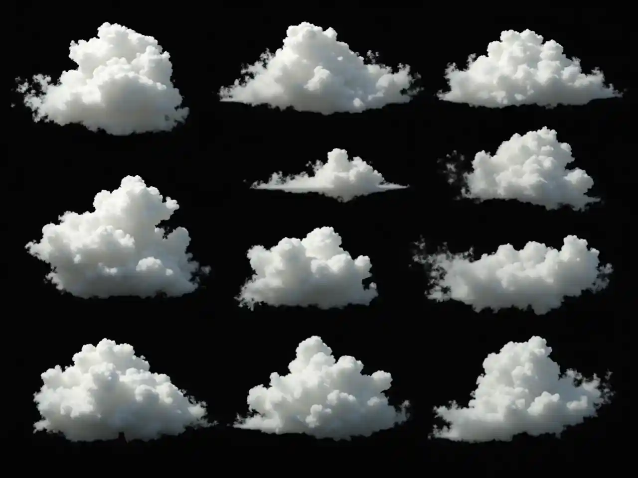 RoyWitte wolken collectie geïsoleerd op zwarte achtergrond, wolk op zwarte