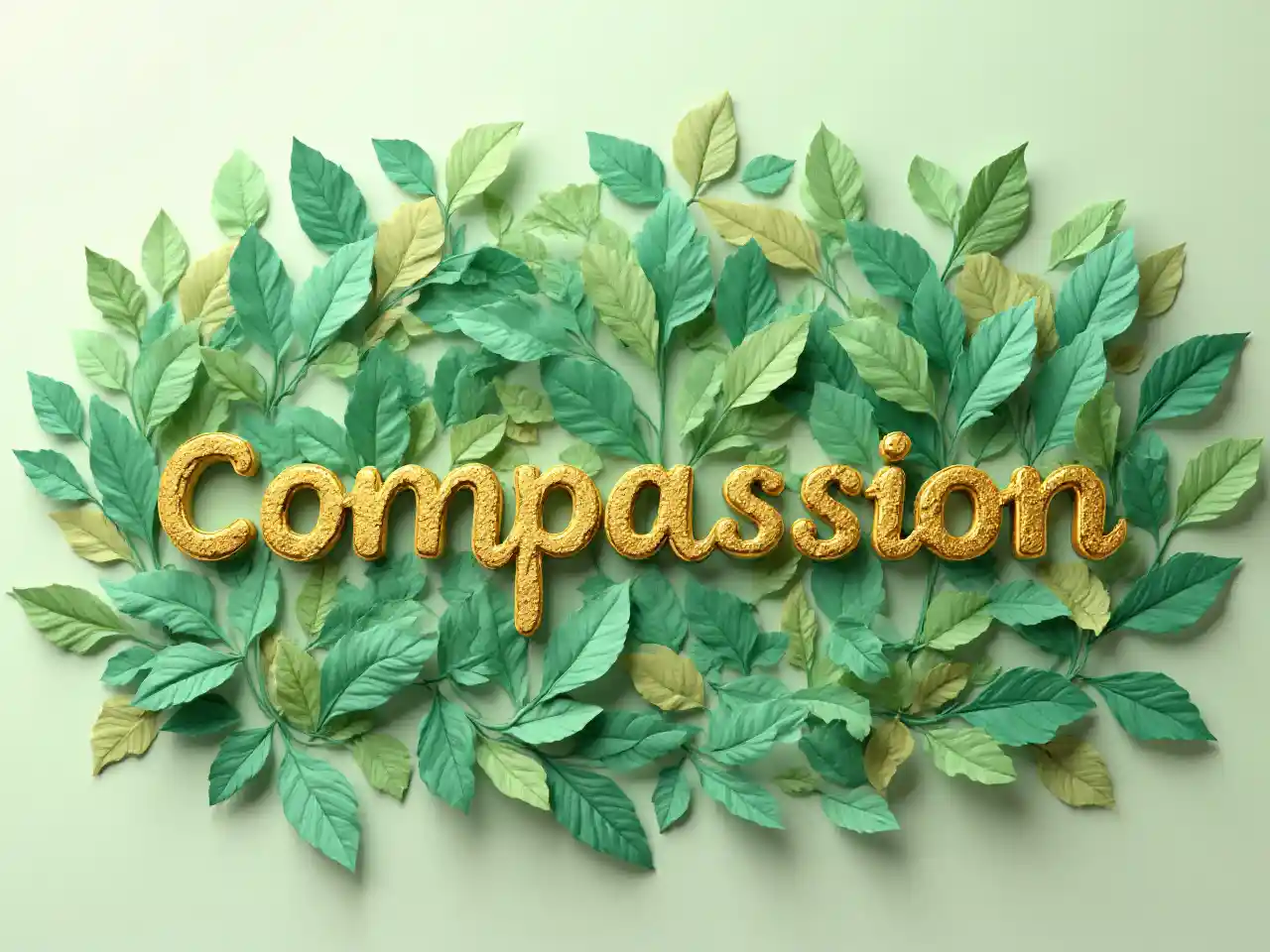 Aubreyhet woord 'compassie' in groene en gouden kleuren